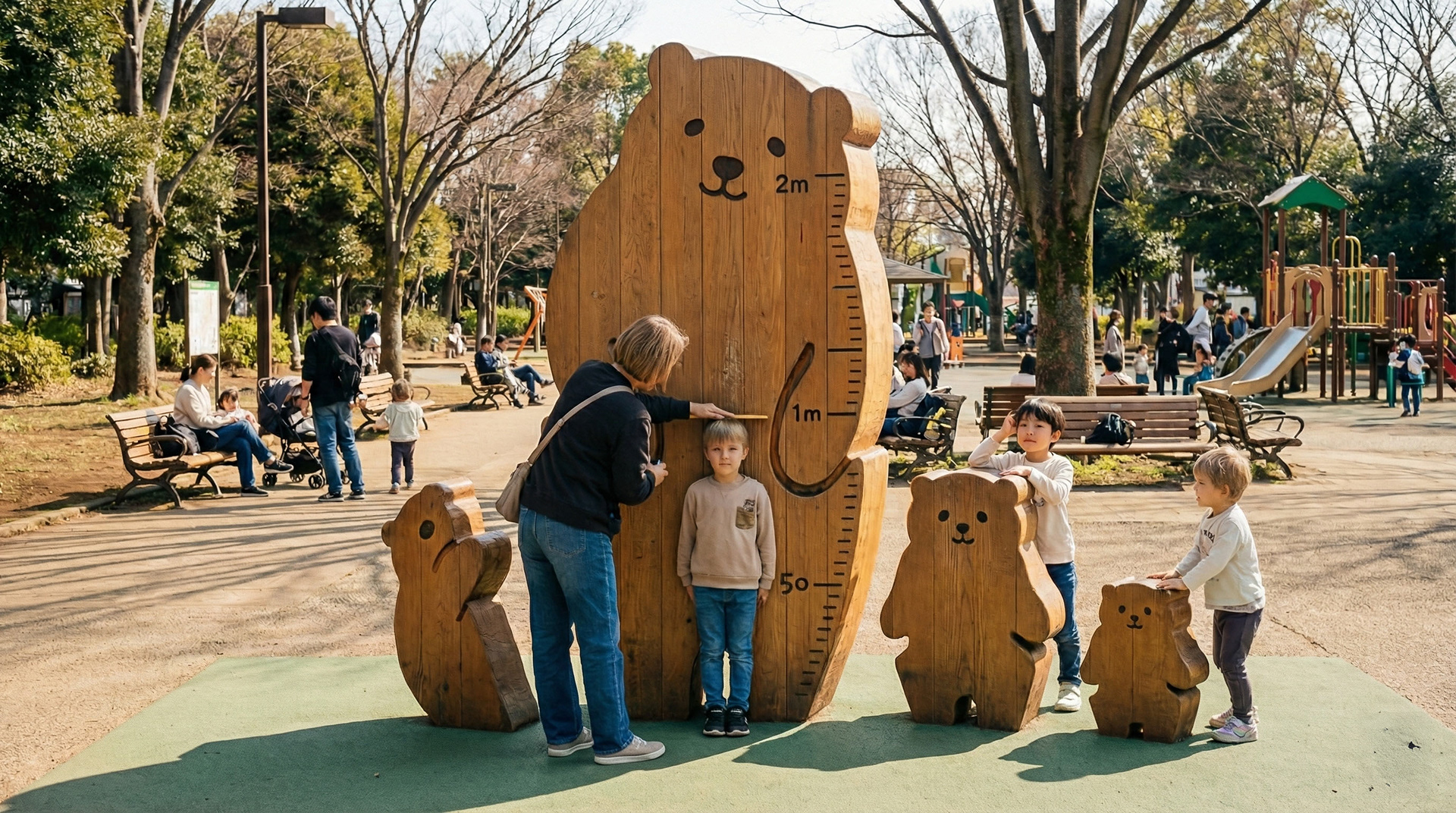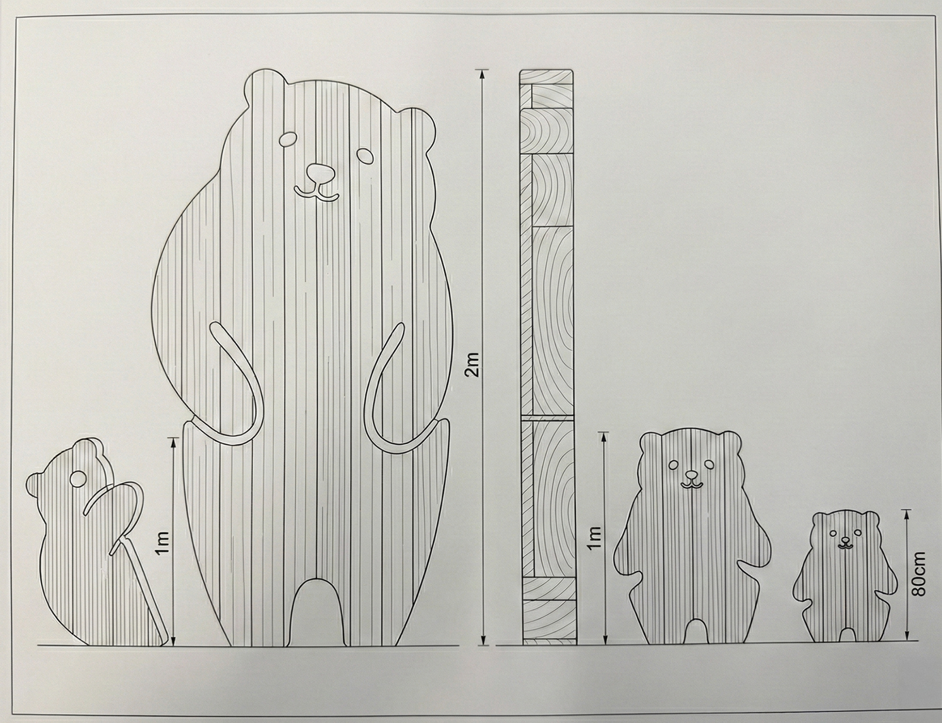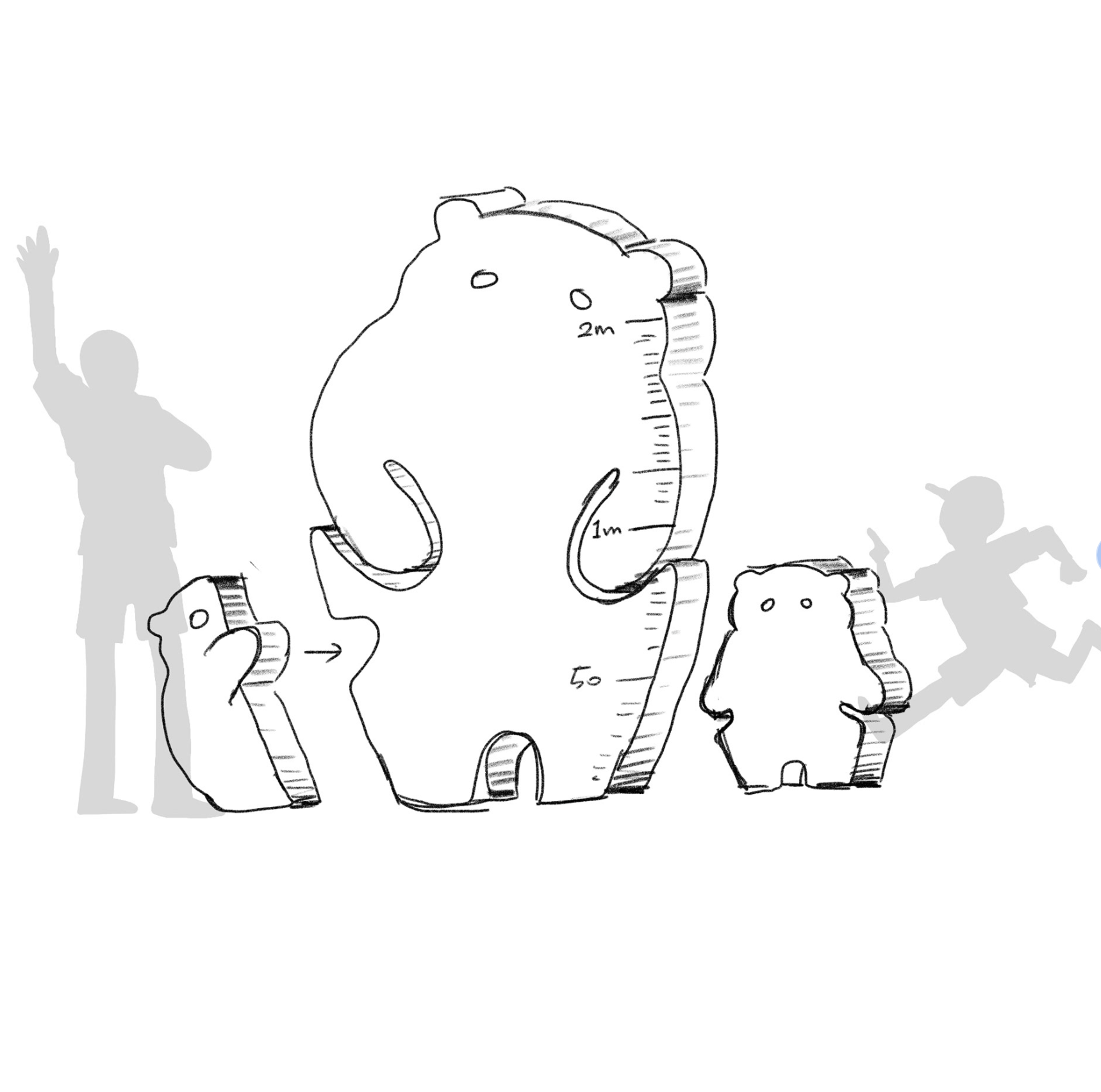 This rendering is a height-measuring sculptural installation designed for a children’s playground. Shaped like a bear, the structure goes beyond being a simple play object and invites children to visually and physically experience their own growth. By standing next to the bear and measuring their height, children naturally compare their bodies with the marked scale. Rather than emphasizing competition or evaluation, the act encourages a gentle moment of self-discovery—recognizing whether they have grown since the last visit. Parents and caregivers often participate in this process, creating opportunities for intergenerational interaction within the play space. Constructed from wood and softened by rounded forms, the sculpture harmonizes with the surrounding playground environment. Its warm material and friendly appearance make it approachable, while the bear’s calm expression is intended to feel like a quiet companion observing a child’s growth over time. Blurring the boundary between sculpture and function, this work transforms the everyday act of measuring height into a playful and memorable experience. As children return to the playground over the years, the bear becomes more than a measuring device—it serves as a marker of time, growth, and personal memory.