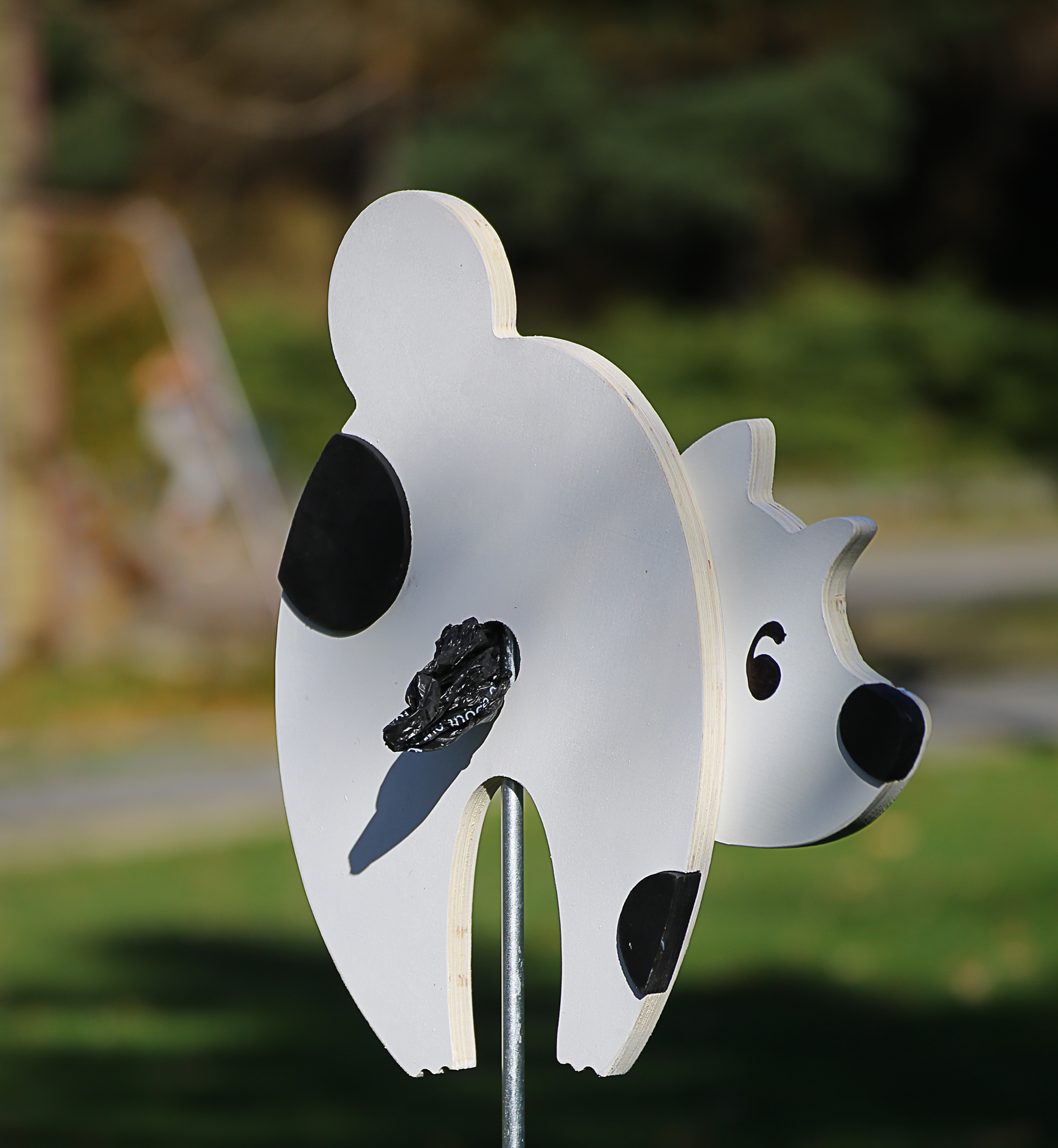 Plywood, 20" X 30", This prototype was designed specifically for Canadian parks, blending functionality with a sense of local character and playfulness. Its form can be adapted to reflect the atmosphere of each town or the breed of dogs commonly seen in the area, making it a flexible and site-responsive design. The piece reimagines an ordinary public object as something engaging and visually delightful—encouraging people to care for shared spaces with a smile.